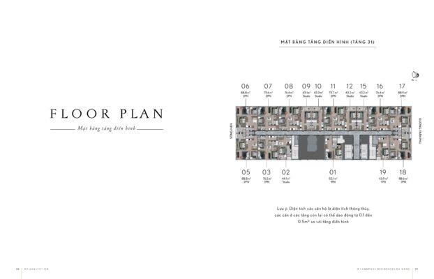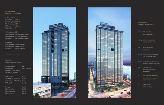 · Tầng 8-20: 300 phòng khách sạn Courtyard by Marriott Danang Han River · Tầng 21-28: 91 căn hộ dịch vụ Marriott Executive Apartment · Tầng 30-43: 224 căn hộ cao cấp M Landmark Residences |