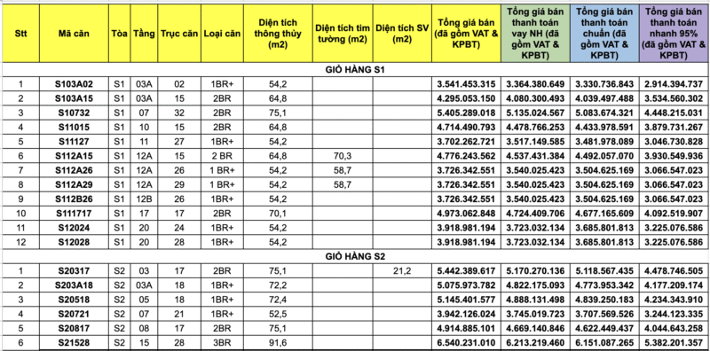 Giá bán sẽ phụ thuộc vào tầng, hướng view căn hộ. Giá bán chưa bao gồm VAT và KPBT.