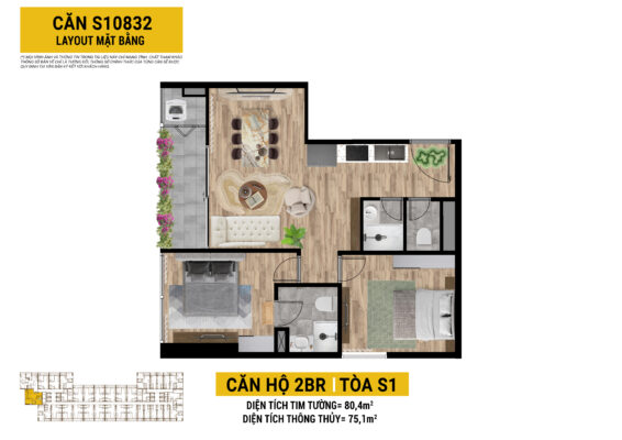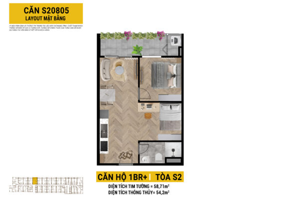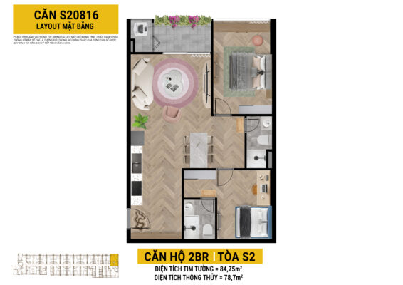 Tiêu chuẩn bàn giao: Hoàn thiện trần, tường, sàn (không bao gồm thiết bị nội thất)