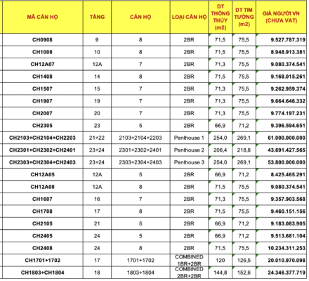 Sản phẩm 187 căn căn hộ cao cấp từ 1-3 phòng ngủ và penthouse