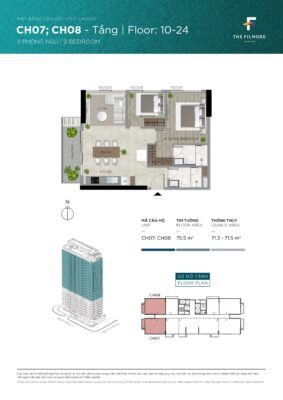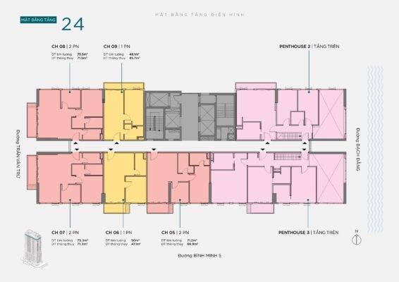 Quy  1.504 m2 với 01 toà tháp căn hộ cao 25 tầng nổi + 3 tầng hầm